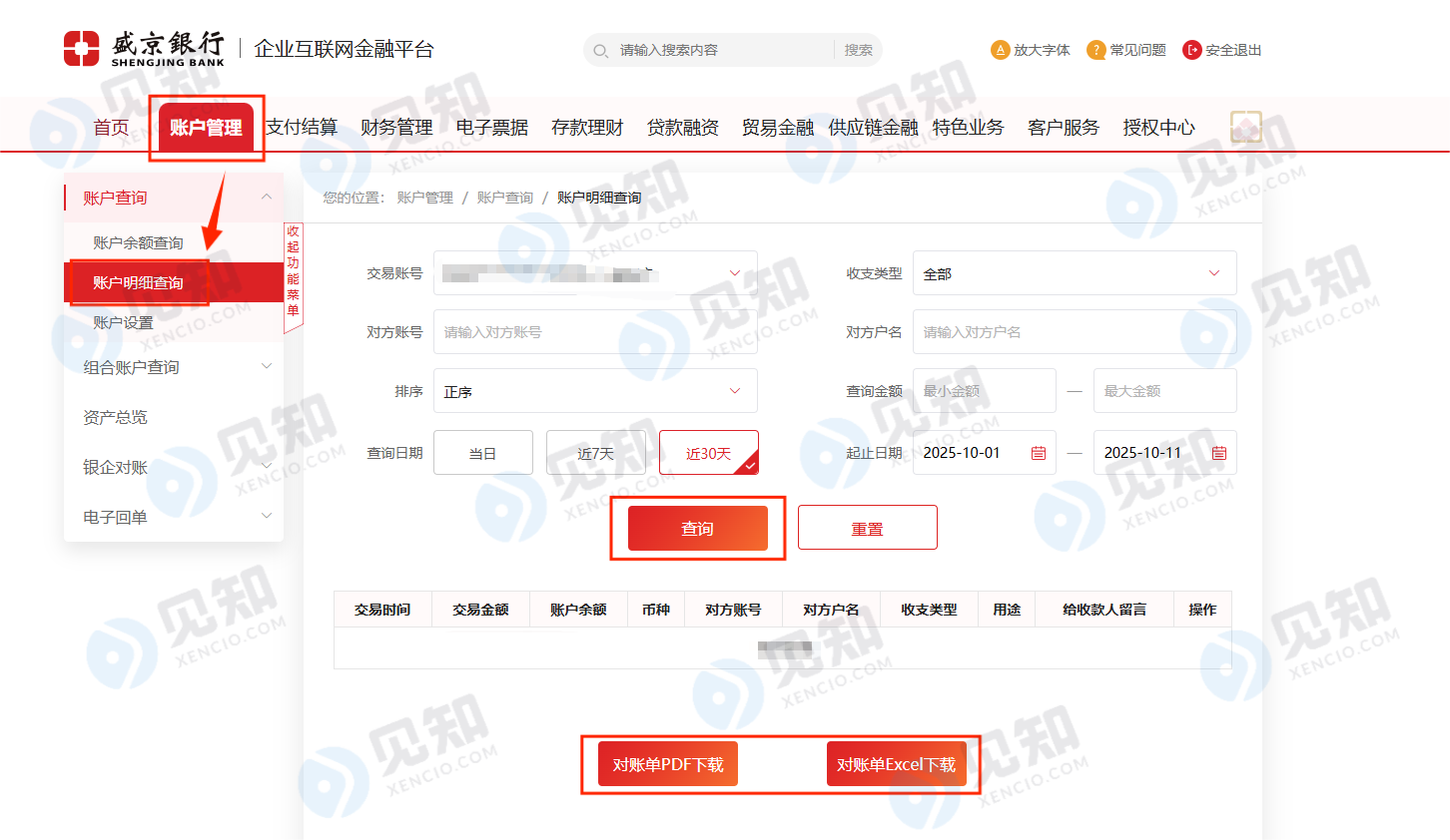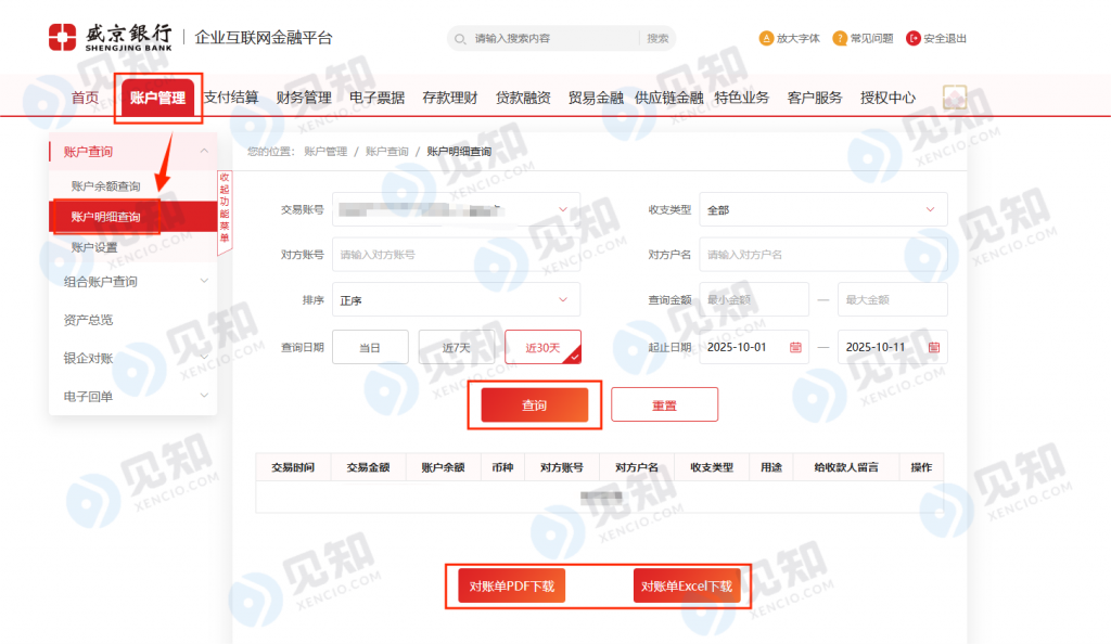 盛京银行 - 交易流水导出电子流水交易明细导出指南 – 企业网银版 下载时间段: 1. 登录企业网上银行-点击“账户查询”-点击“账户明细查询”-选择起止日期-点击“查询”-选择下载PDF或Excel流水 Post Views: 22